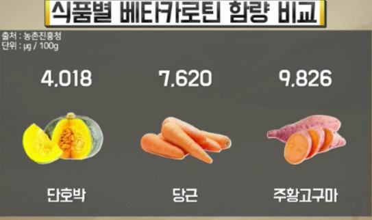 이중 베타카로틴은 항산화 물질로 장내 면역세포의 활동성을 높여 배변활동을 도와 변비 예방에 도움을 주는 식재료입니다.