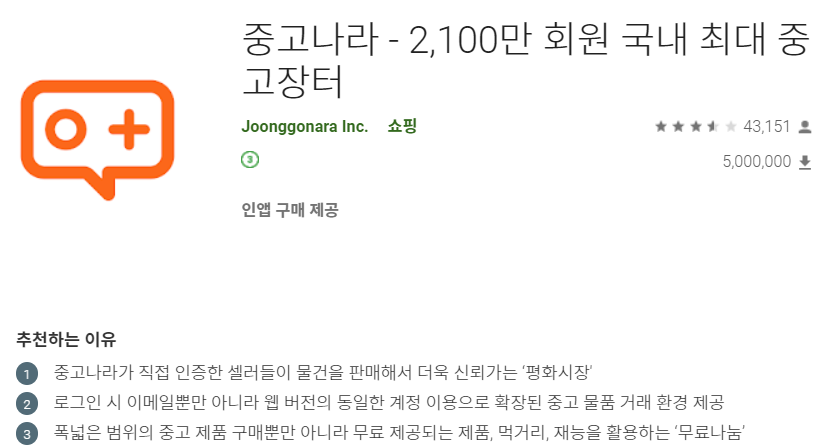 누구나 아는 중고거래 대표사이트의 공식 앱